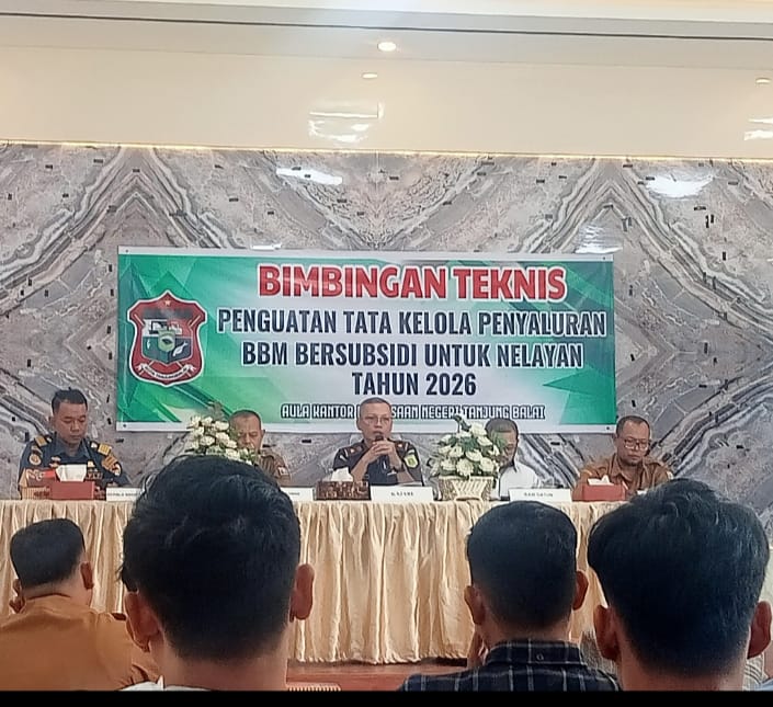 Detik-times.com, TANJUNGBALAI SUMUT- Bimbingan tehniks penguatan tata kelola penyaluran BBM bersubsidi untuk nelayan tahun 2026 yang dilaksanakan di Aula kantor kejaksaan Negeri kota Tanjungbalai pada Senin 9/1/26.Dihadiri Kajari, Kadis Pertanian, Kepala KSOP IV TBA, Kepala BPJS Ketenagakerjaan,dan juga para pengusaha yang bergerak dalam bidang Kelautan serta perwakilan dari Himpunan Nelayan Seluruh Indonesia (HNSI) Kota Tanjungbalai.