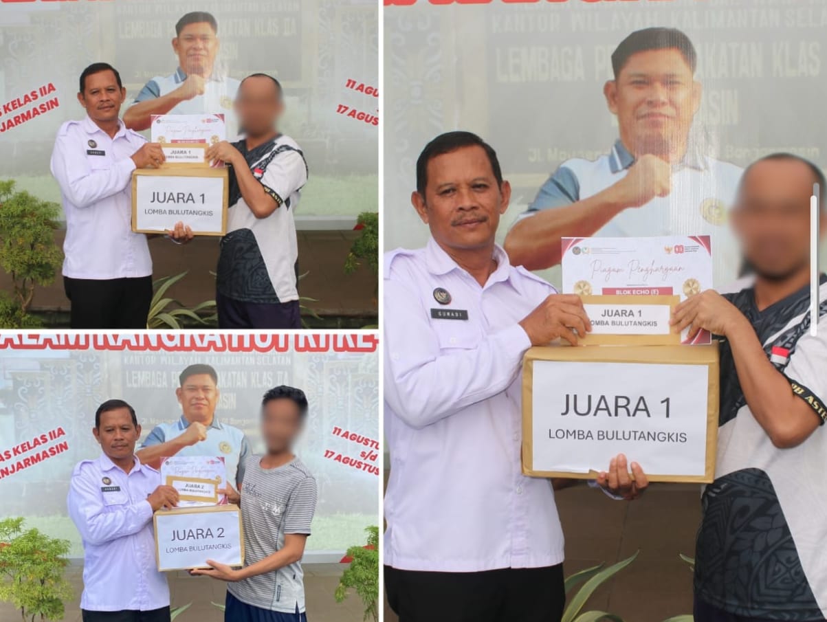 Suasana penuh sportivitas kembali mewarnai Lembaga Pemasyarakatan (Lapas) Kelas IIA Banjarmasin saat penyerahan piagam penghargaan dan hadiah kepada para juara lomba bulu tangkis dalam rangka Pekan Lomba Kemerdekaan, Selasa (19/08) pagi.