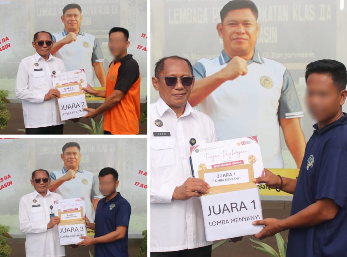 Suasana meriah dan penuh keceriaan menyelimuti Lembaga Pemasyarakatan (Lapas) Kelas IIA Banjarmasin pada Selasa (19/08) pagi, saat Kasubsi Bimbingan Kemasyarakatan dan Perawatan (Bimkemaswat), M. Junaidi, menyerahkan piagam penghargaan dan hadiah kepada para pemenang lomba nyanyi dangdut.