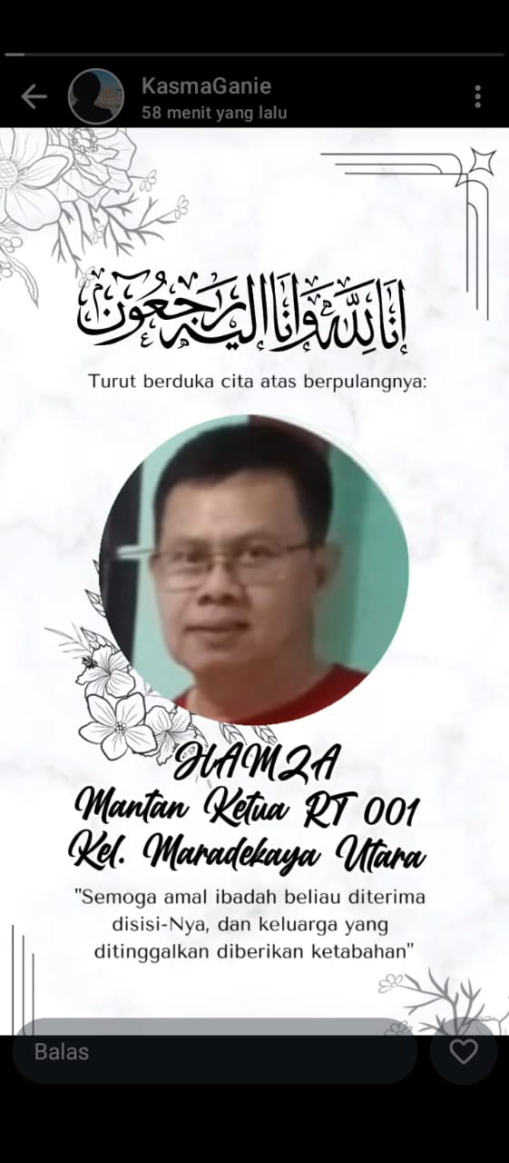Keluarga besar Satlinmas Kecamatan Makassar mendoakan semoga segala amal ibadah Almarhum Hamzah diterima di sisi Allah SWT dan keluarga yang ditinggalkan diberi ketabahan.[**]
