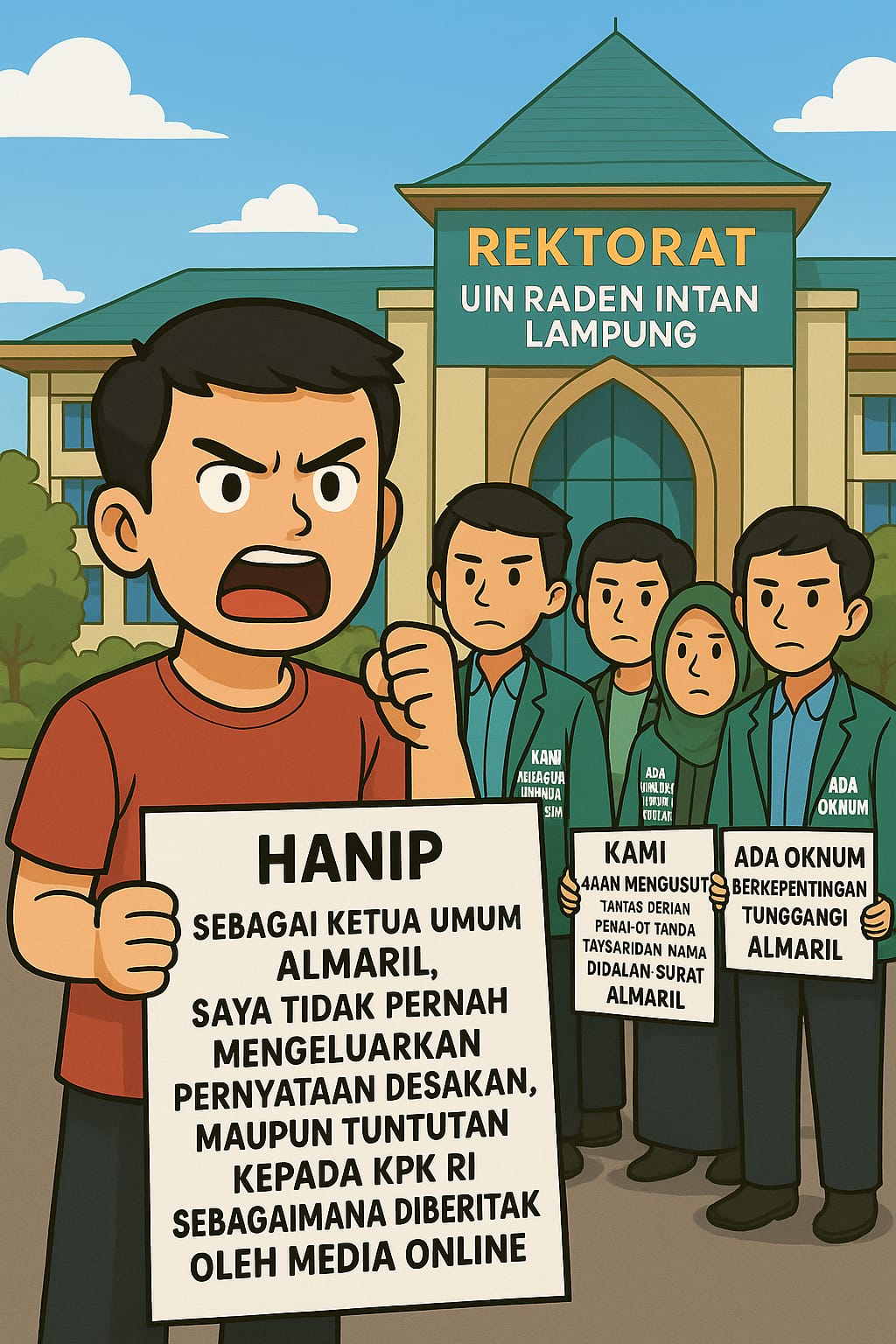Bandarlampung – Ketua Umum (Ketum) Aliansi Mahasiswa UIN Raden Intan Lampung (ALMARIL) bantah bahwa berita berjudul “Aliansi Mahasiswa UIN Lampung Pertanyakan Laporannya ke KPK” oleh Media Bongkarpost.co.id pada 9 Juni 2025 kemarin.