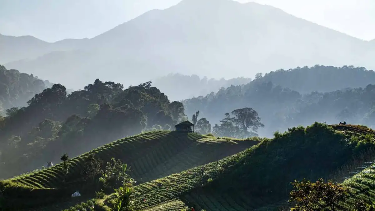 Sejauh mata memandang, kamu akan disuguhkan pemandangan nan menawan dan layering perbukitan serta pohon pinus yang memanjakan mata.