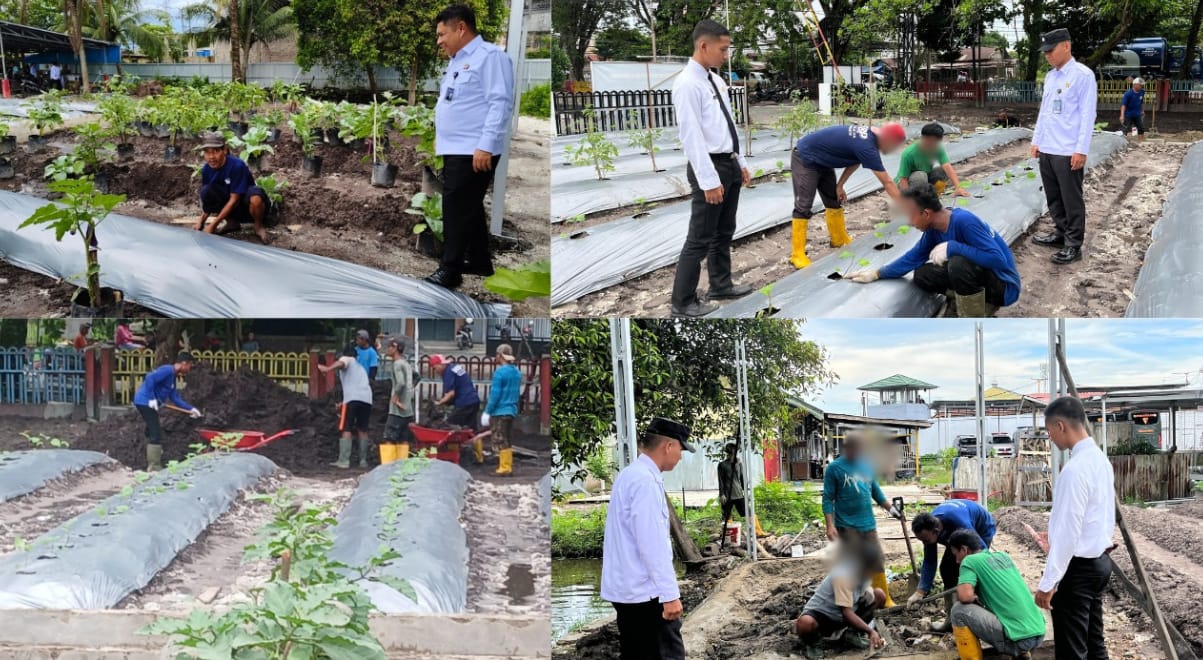 Petugas dan WBP Lapas Kelas IIA Banjarmasin Bersatu dalam Kerja Bakti Perawatan Lahan Produktif