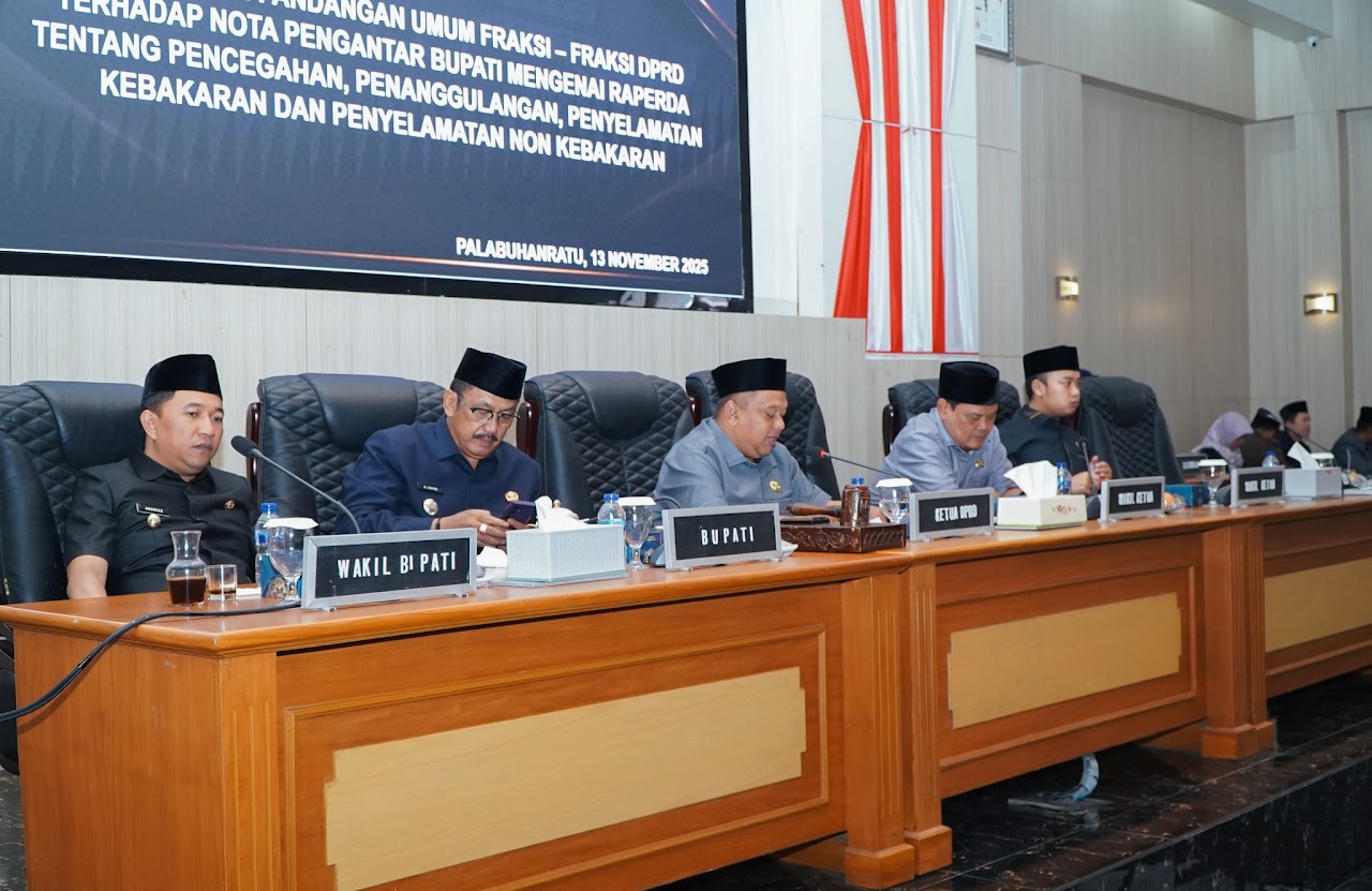 Sukabumi,Detiktimes.com,-Rapat Paripurna kali ini mengagendakan Penyampaian Pandangan Umum Fraksi-Fraksi DPRD terhadap Nota Pengantar Bupati Sukabumi mengenai Rancangan Peraturan Daerah (Raperda) tentang Pencegahan, Penanggulangan, Penyelamatan Kebakaran dan Penyelamatan Non Kebakaran.