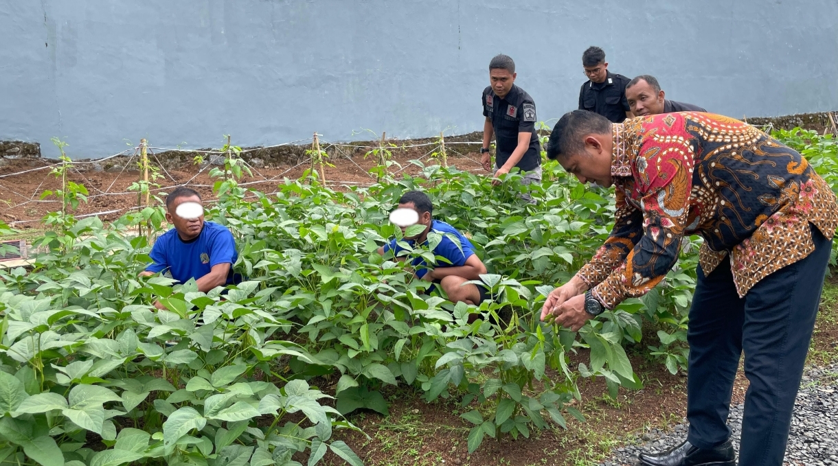 Kepala Lembaga Pemasyarakatan (Lapas) Narkotika Kelas IIA Karang Intan, Edi Mulyono, melakukan pemantauan langsung terhadap lahan pertanian kedelai yang dikelola di bawah program pembinaan kemandirian warga binaan, Sabtu (12/7/2025).